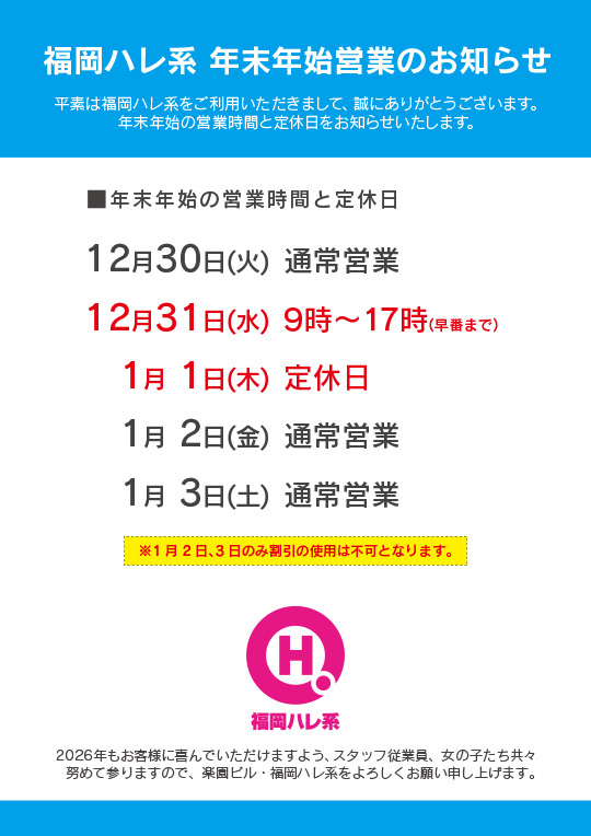 「イベント情報」を更新しました。「年末年始営業のお知らせ」を公開しました。